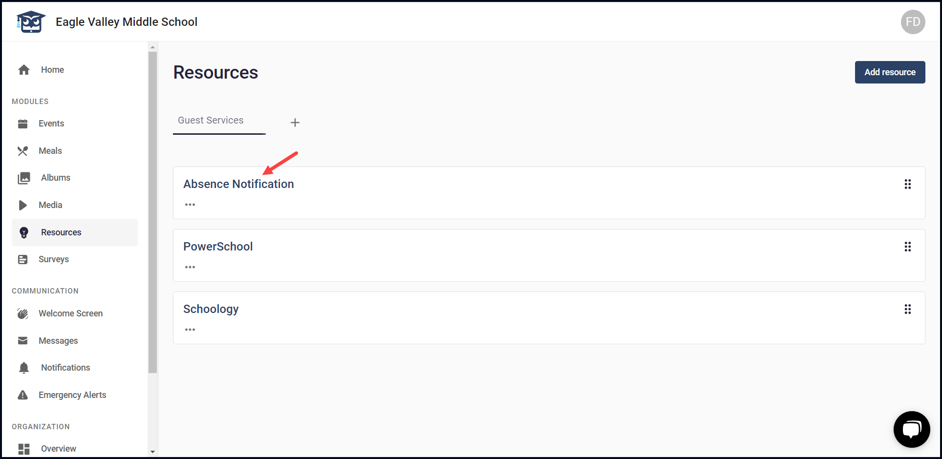 2. From the list of modules displayed, click Resources. Doing so takes you to the Resources screen.