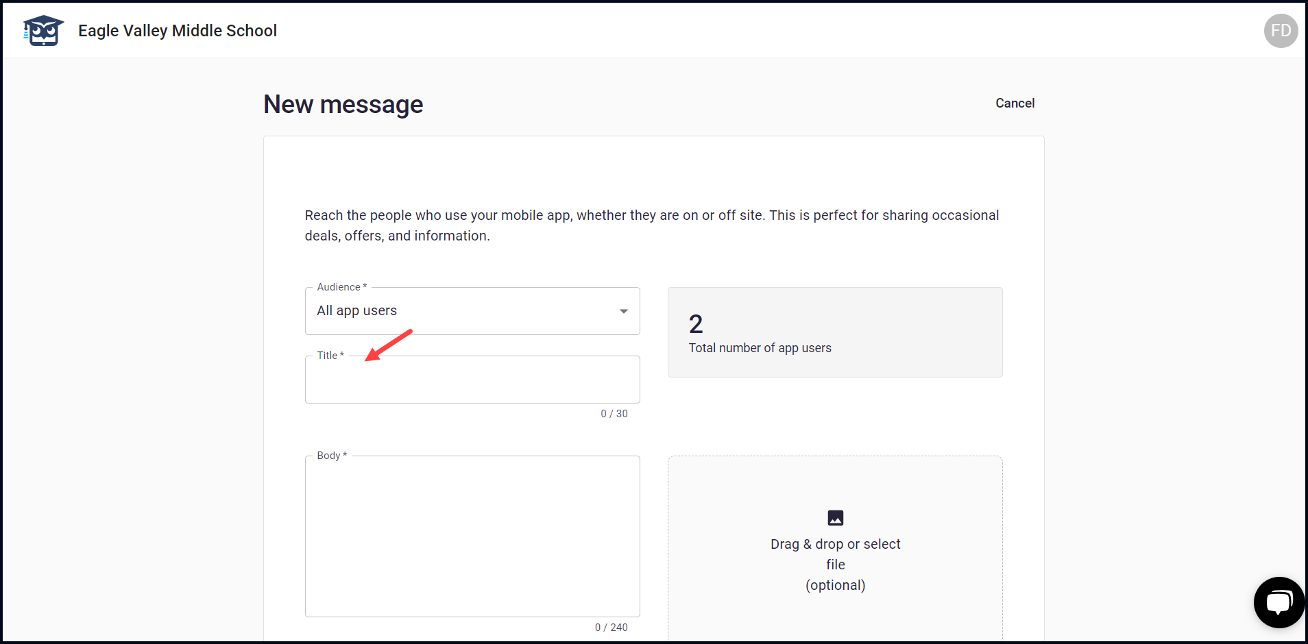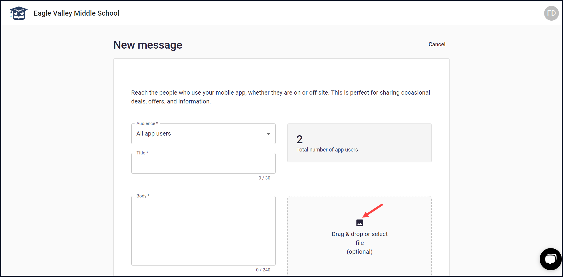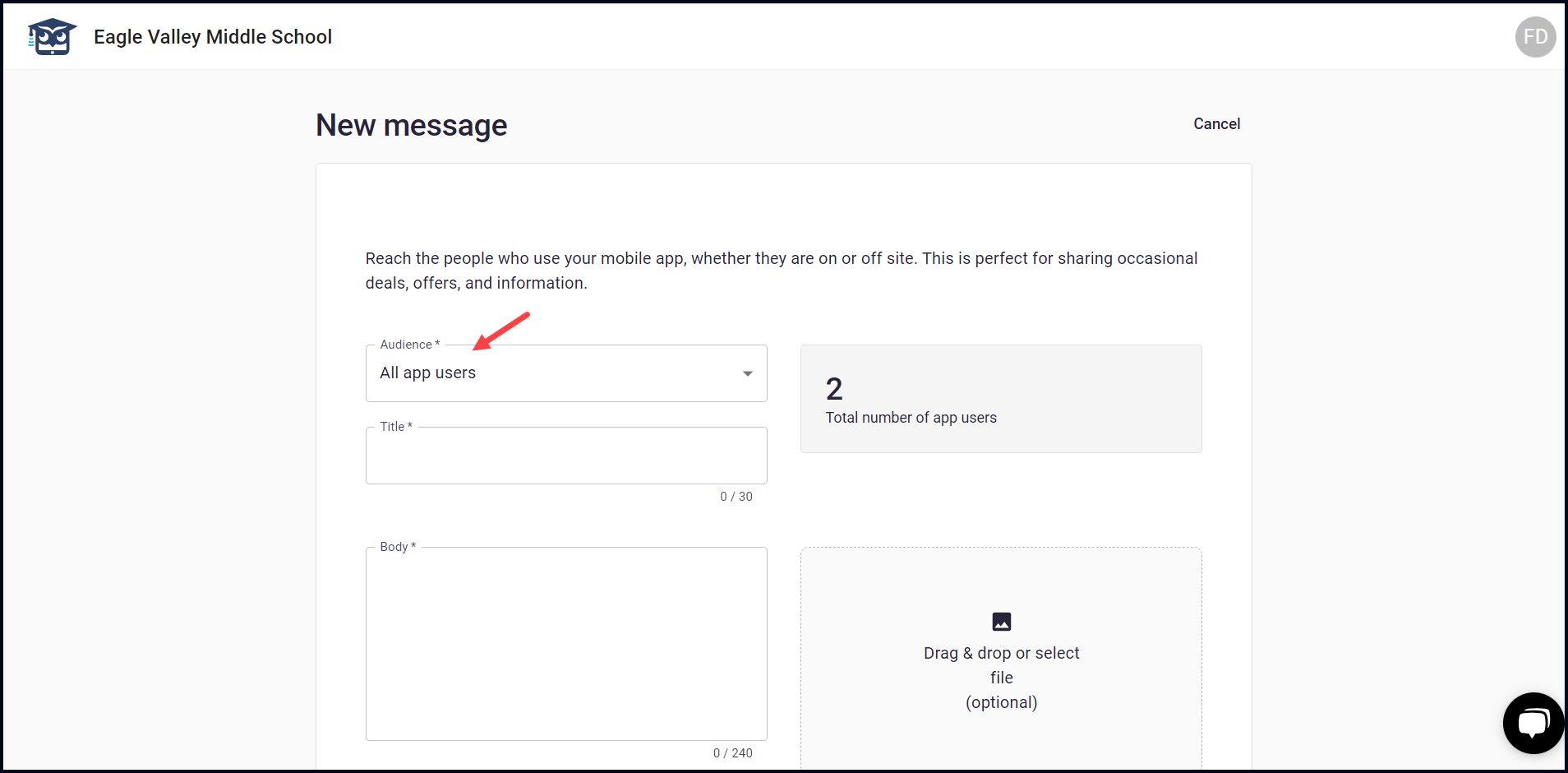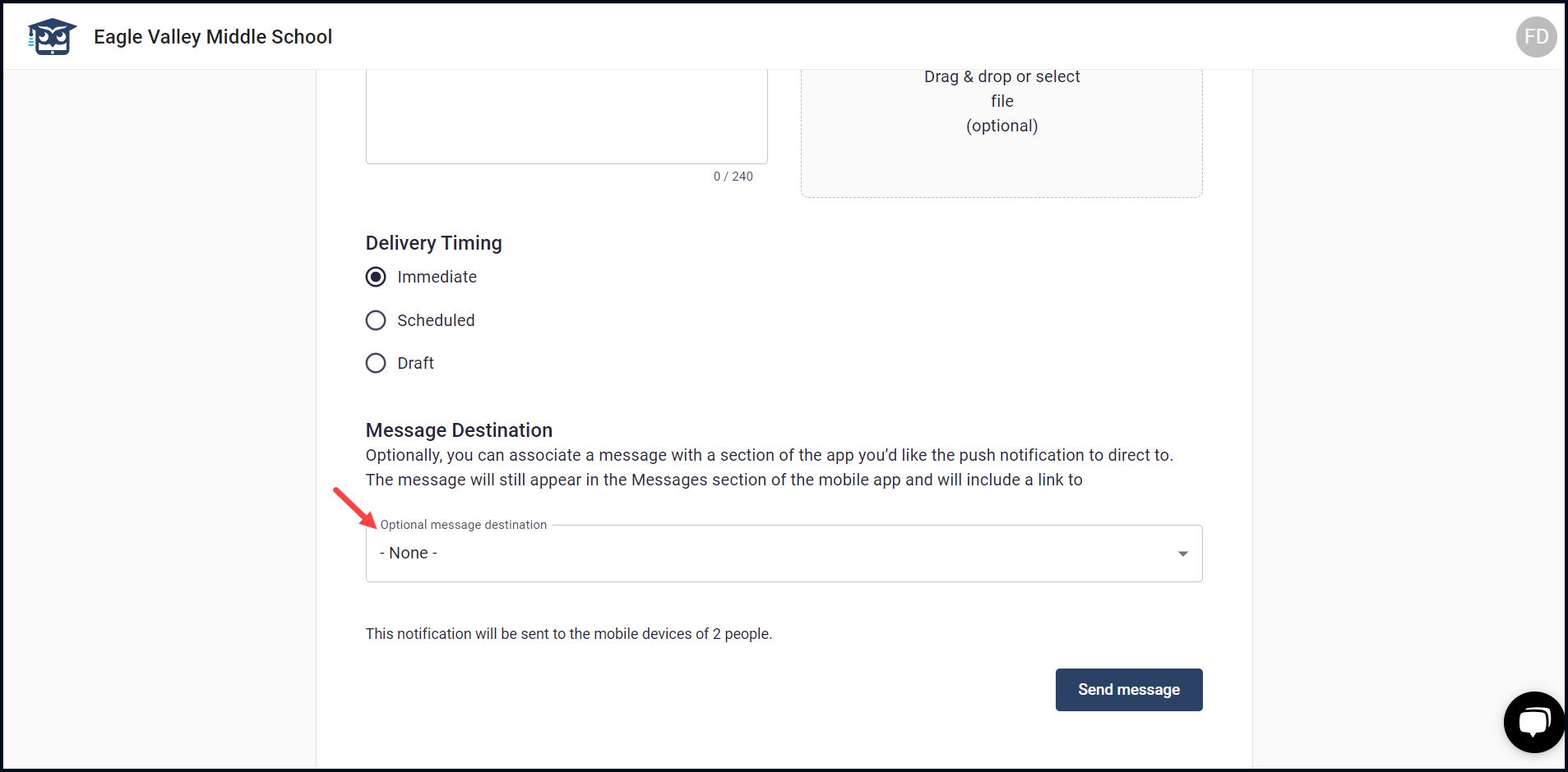 8. In case you want to link an optional destination for the message, choose that destination from the Optional Message Destination dropdown.