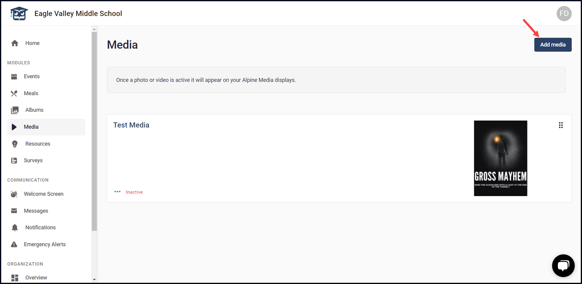 2. Click the Add media button. Doing so takes you to the New Media screen.
