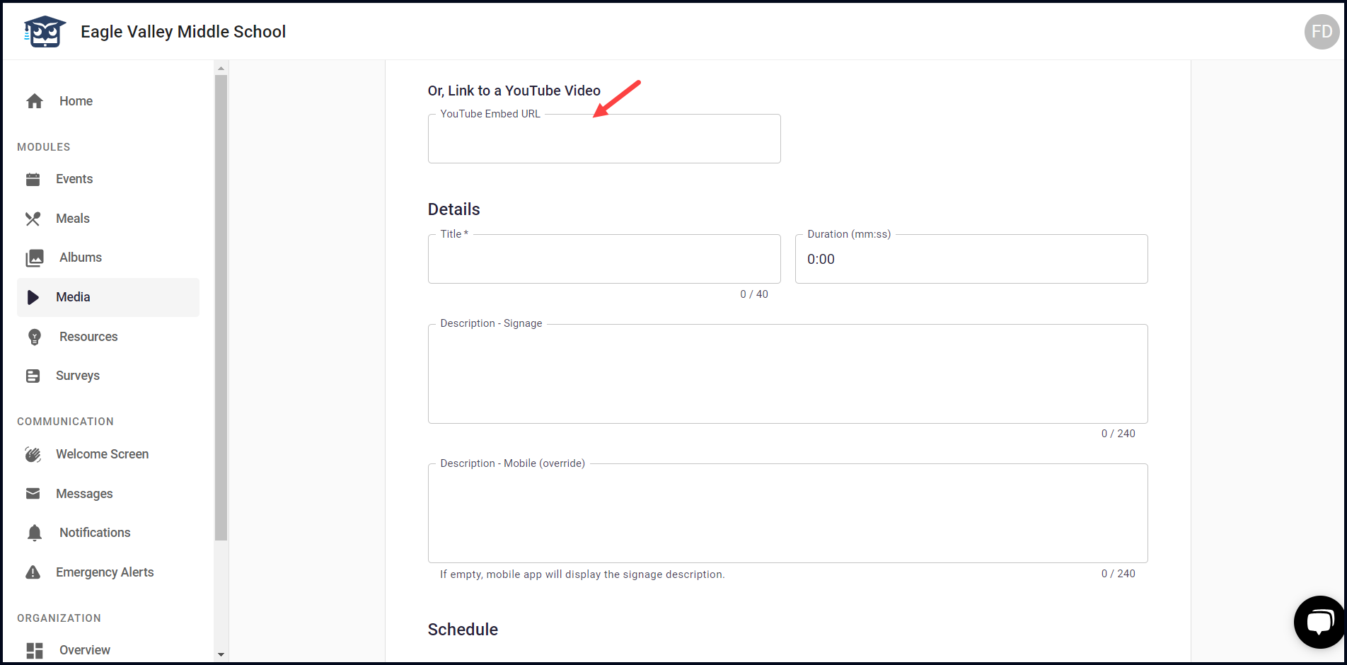 4. If it is a link to a YouTube video, enter the URL in the YouTube Embed URL field.