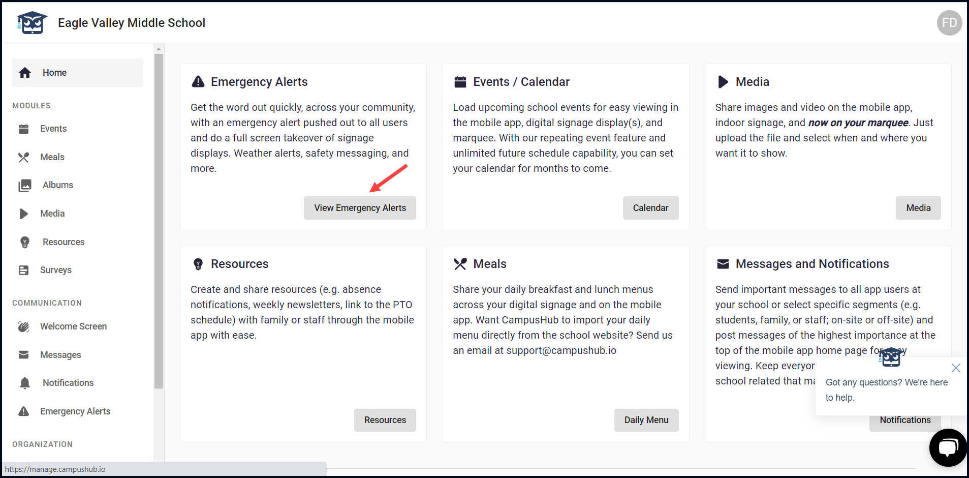 2. To view emergency alerts, click the View Emergency Alert button. This takes you to the Alerts screen where all the existing emergency alerts are displayed.